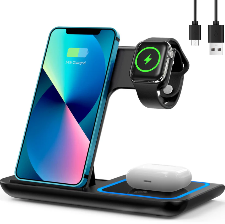 Estación inalámbrica de carga 3 en 1 para iOS y Android