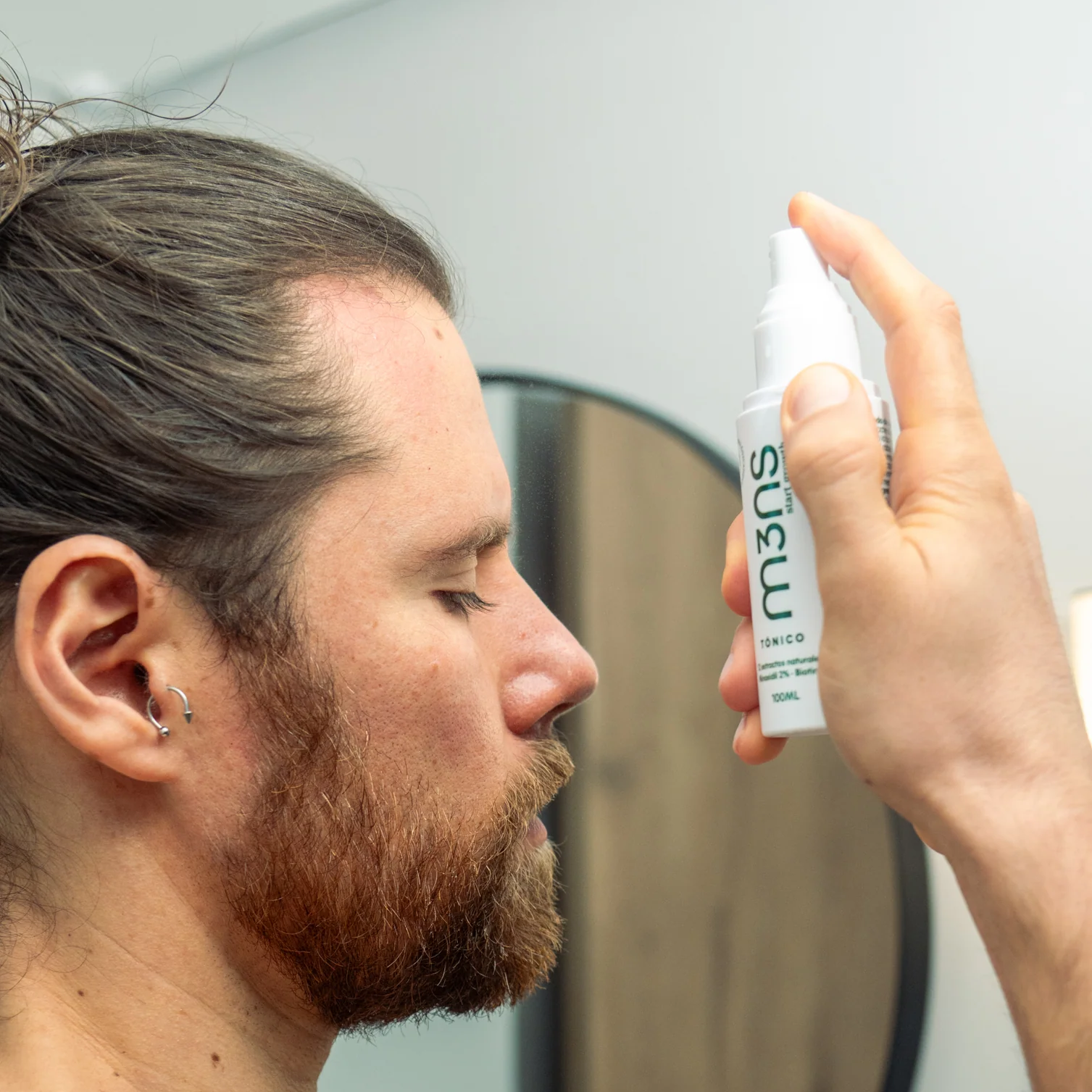 - Tónico: Aplica el tónico en las áreas tratadas, usando un par de sprays por zona. Masajea suavemente.